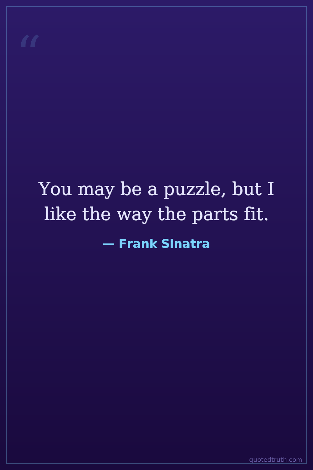 You may be a puzzle, but I like the way the parts fit.