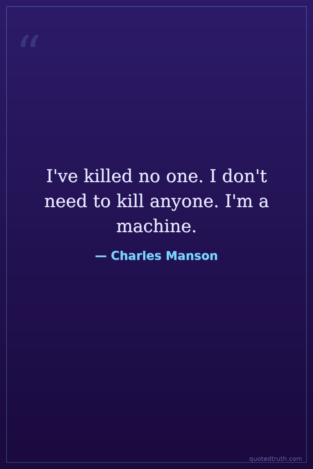I've killed no one. I don't need to kill anyone. I'm a machine.