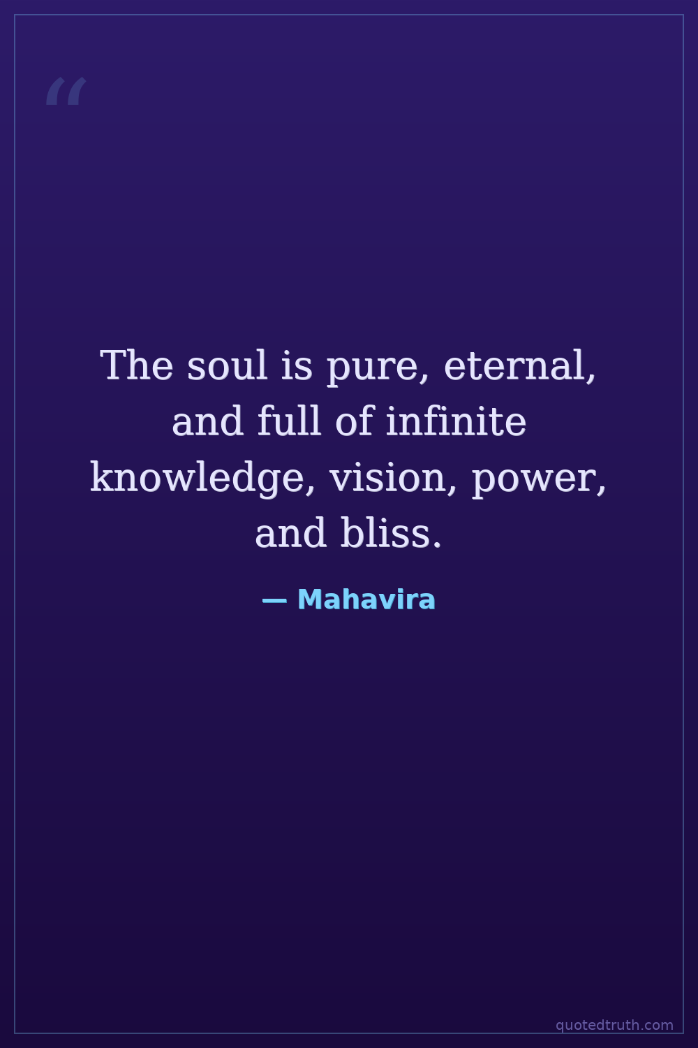 The soul is pure, eternal, and full of infinite knowledge, vision, power, and bliss.