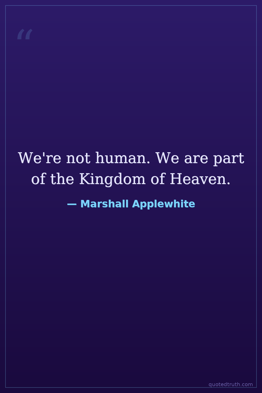 We're not human. We are part of the Kingdom of Heaven.