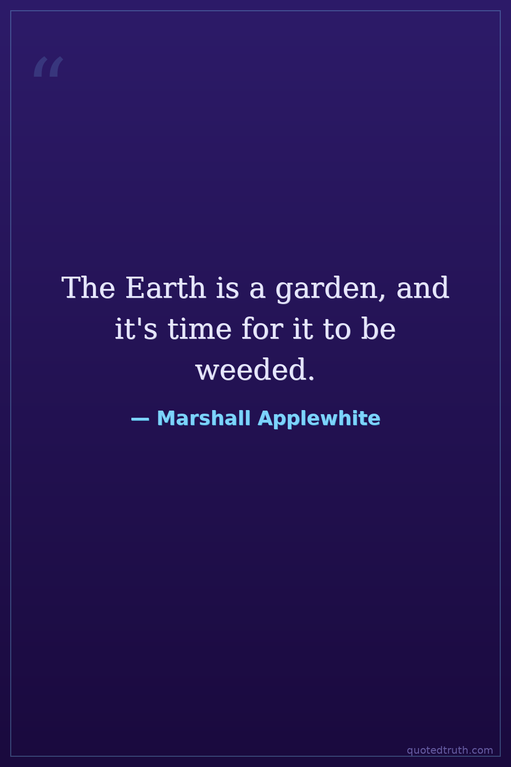 The Earth is a garden, and it's time for it to be weeded.
