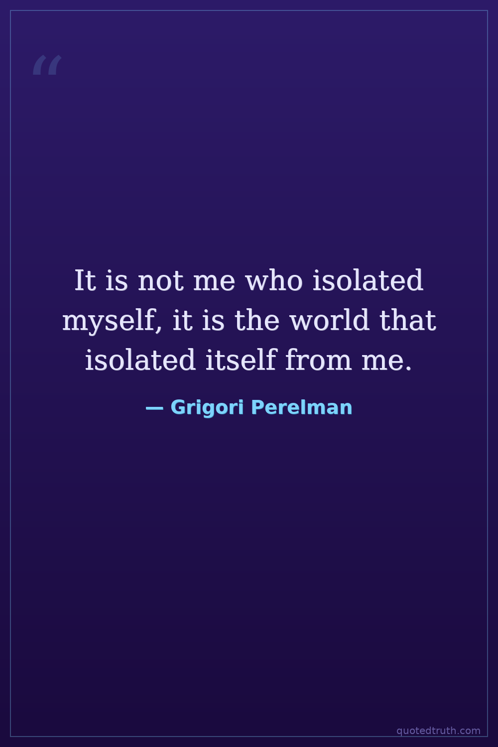 It is not me who isolated myself, it is the world that isolated itself from me.