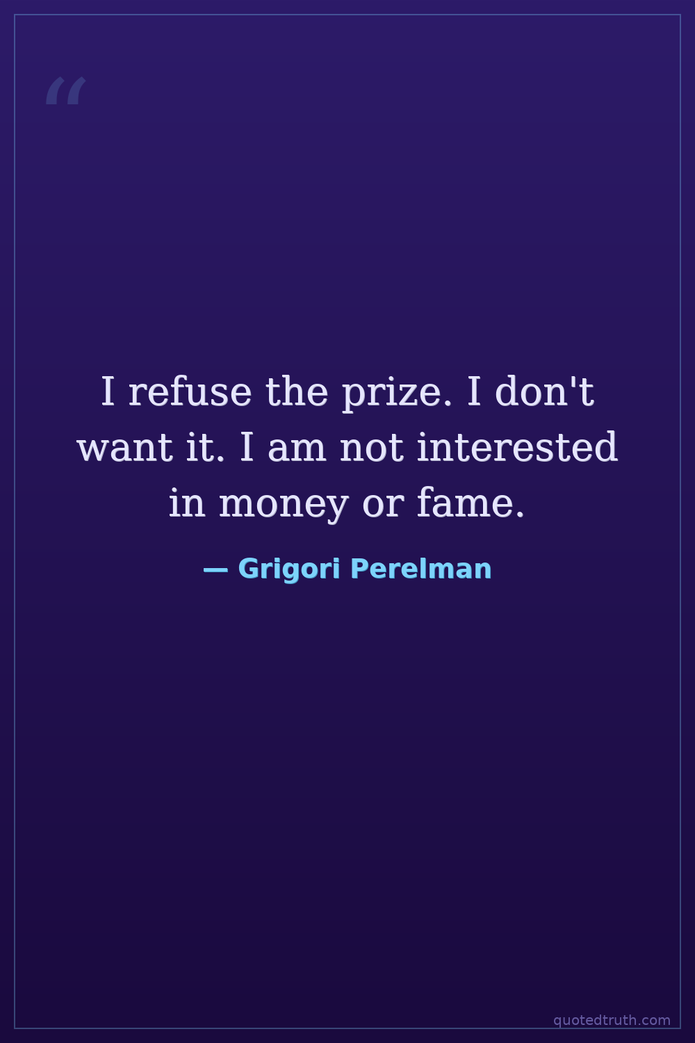 I refuse the prize. I don't want it. I am not interested in money or fame.