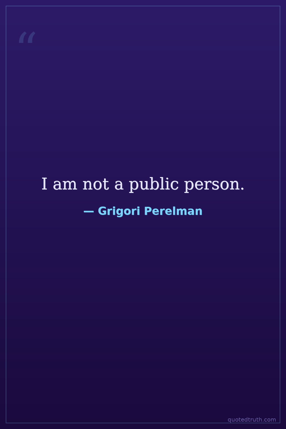 Controversial"I don't need money. I don't need fame. I don't want to be a mathematical hero. I'm not a hero."