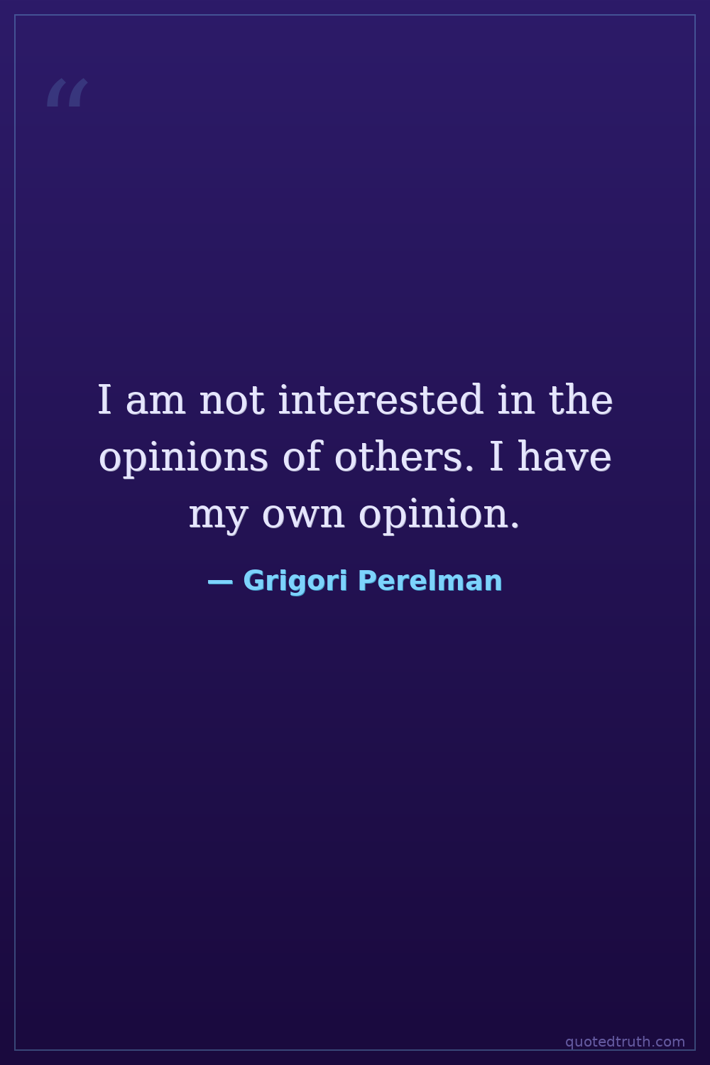 "I do not think that the mathematical community has the right to decide whether I should accept or reject the prize. I have my own reasons. If my proof is correct, then I don't need any other recogniti…"