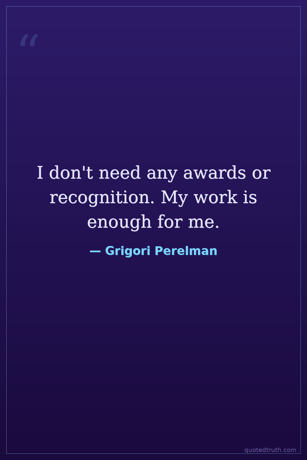 I don't need any awards or recognition. My work is enough for me.