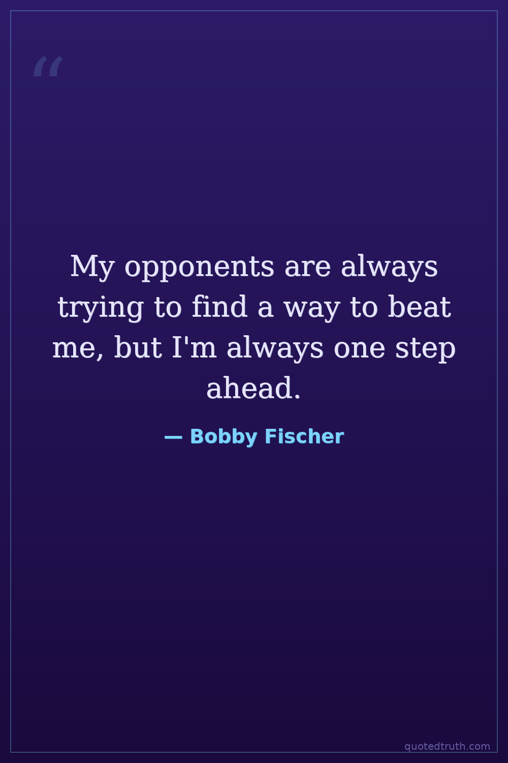 My opponents are always trying to find a way to beat me, but I'm always one step ahead.