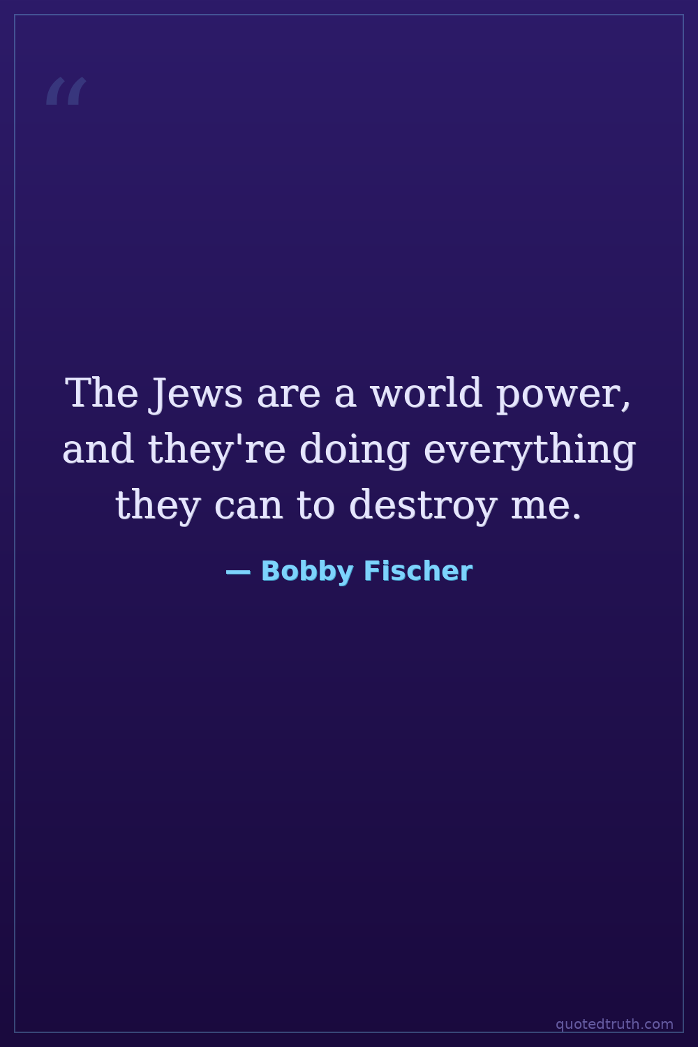 The Jews are a world power, and they're doing everything they can to destroy me.