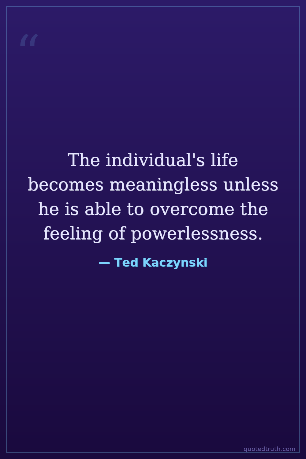 The individual's life becomes meaningless unless he is able to overcome the feeling of powerlessness.