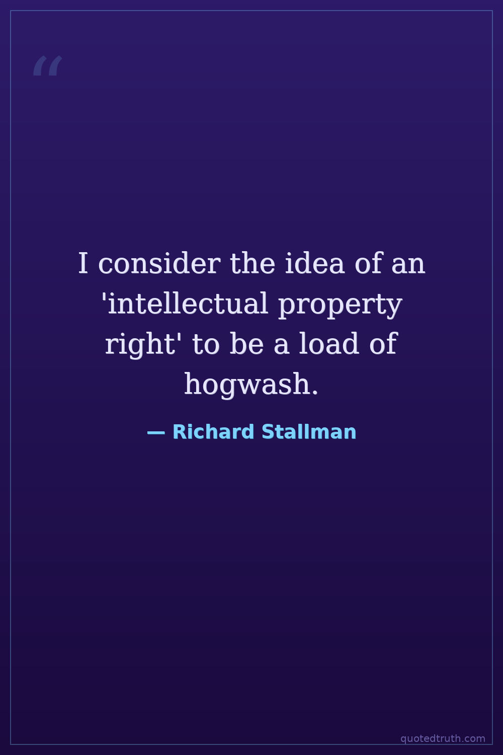I consider the idea of an 'intellectual property right' to be a load of hogwash.