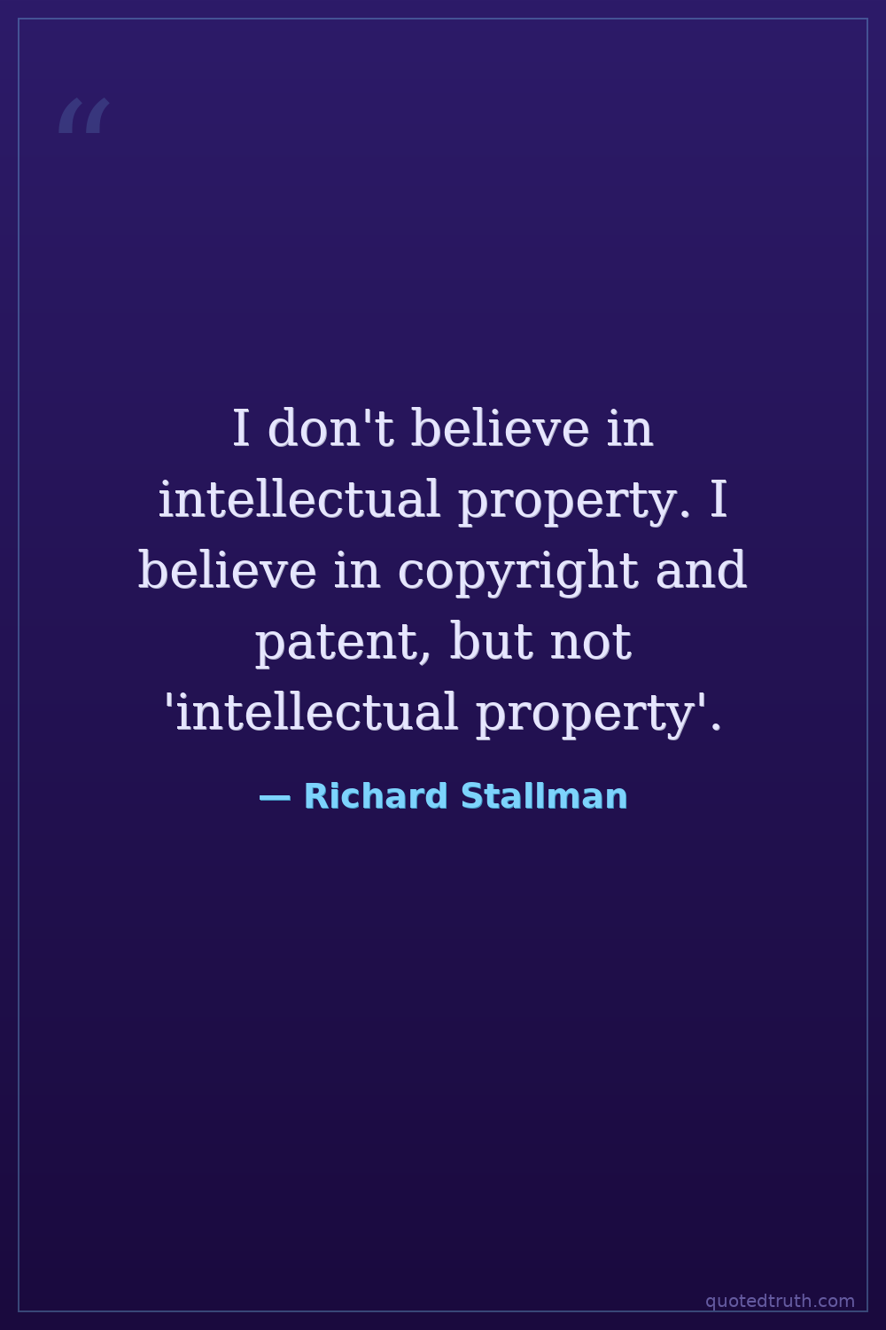 I don't believe in intellectual property. I believe in copyright and patent, but not 'intellectual property'.