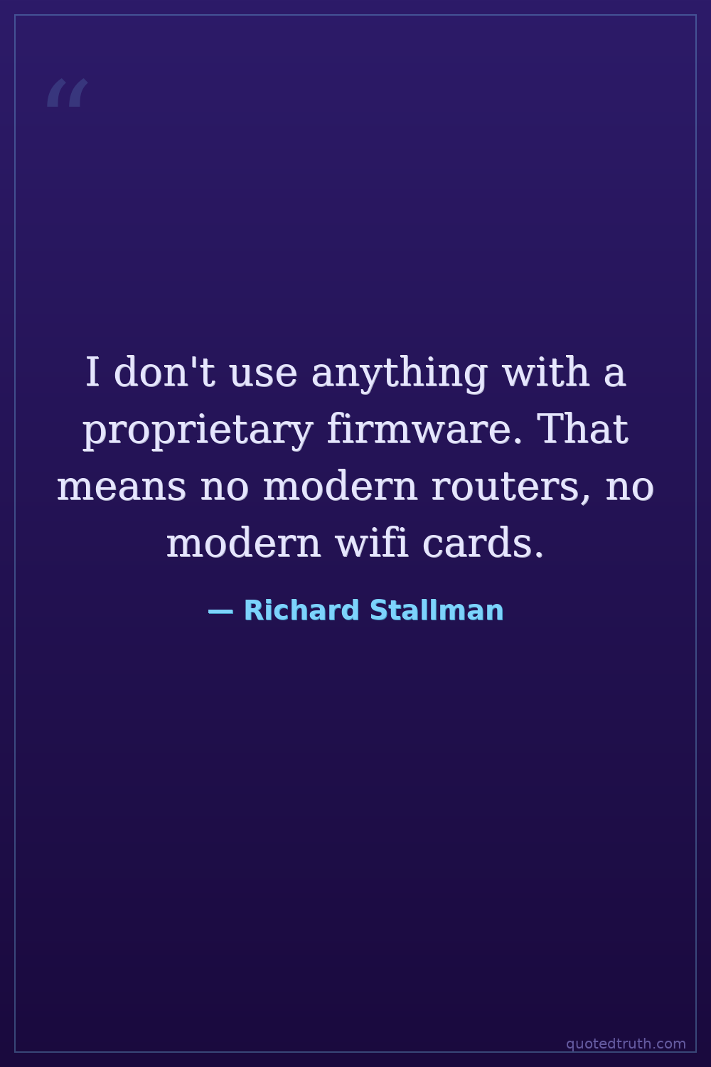 I don't use anything with a proprietary firmware. That means no modern routers, no modern wifi cards.