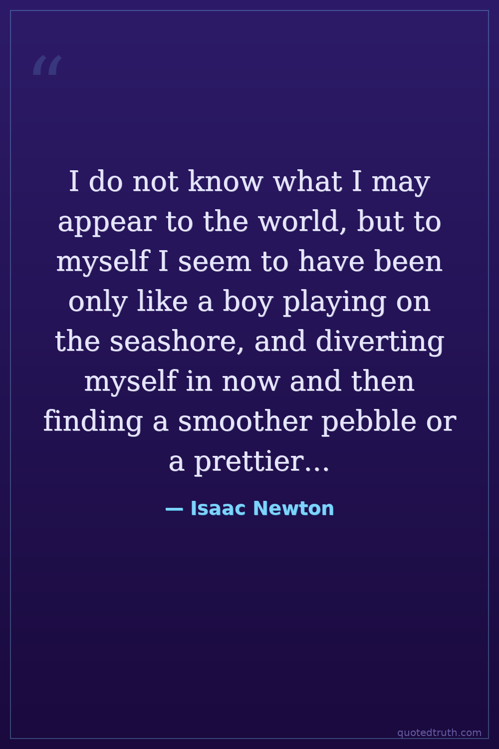 I do not know what I may appear to the world, but to myself I seem to have been only like a boy playing on the seashore, and diverting myself in now and then finding a smoother pebble or a prettier shell than ordinary, whilst the great ocean of truth lay all undiscovered before me.