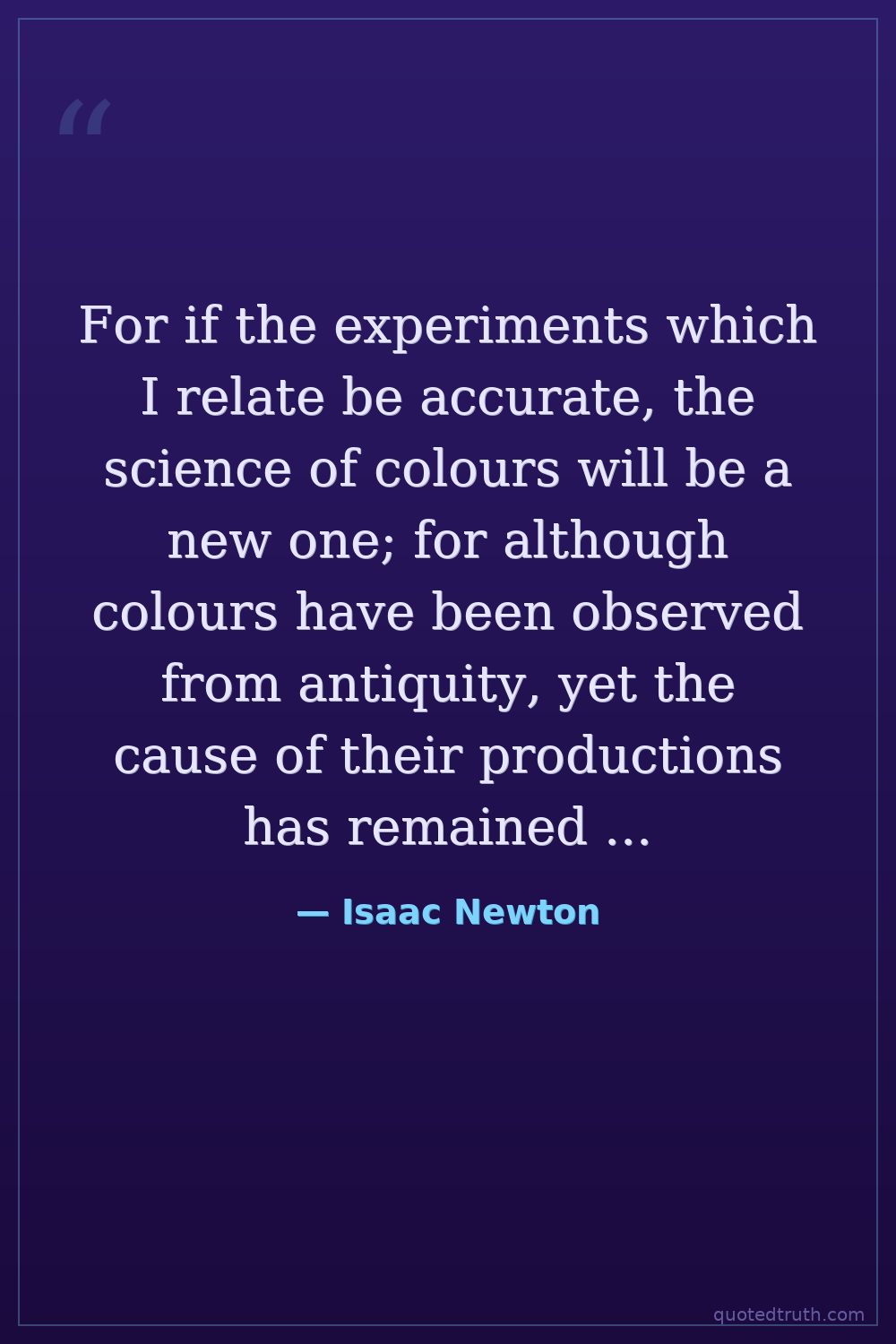 For if the experiments which I relate be accurate, the science of colours will be a new one; for although colours have been observed from antiquity, yet the cause of their productions has remained unknown to this day.
