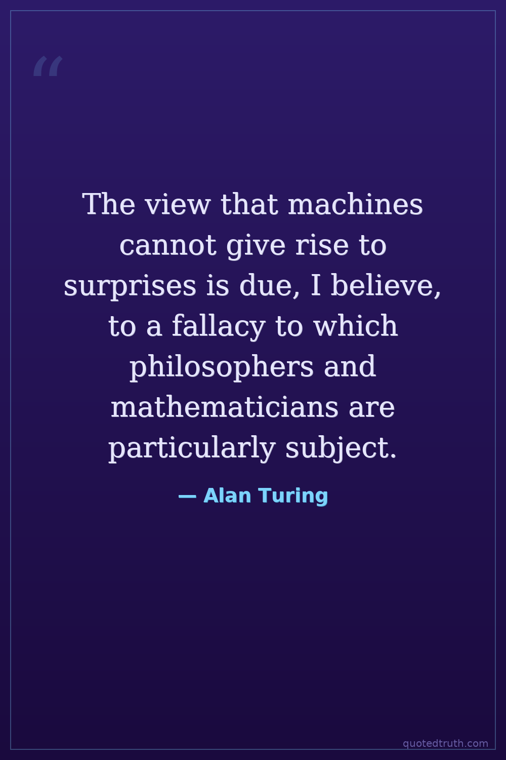 The view that machines cannot give rise to surprises is due, I believe, to a fallacy to which philosophers and mathematicians are particularly subject.