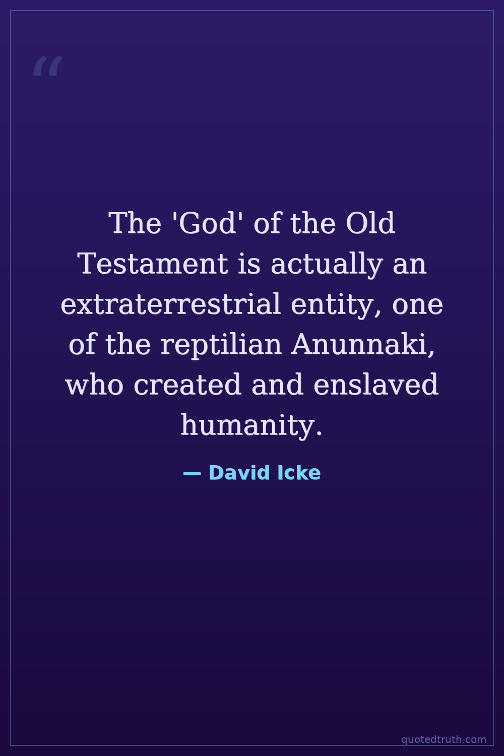 The 'God' of the Old Testament is actually an extraterrestrial entity, one of the reptilian Anunnaki, who created and enslaved humanity.