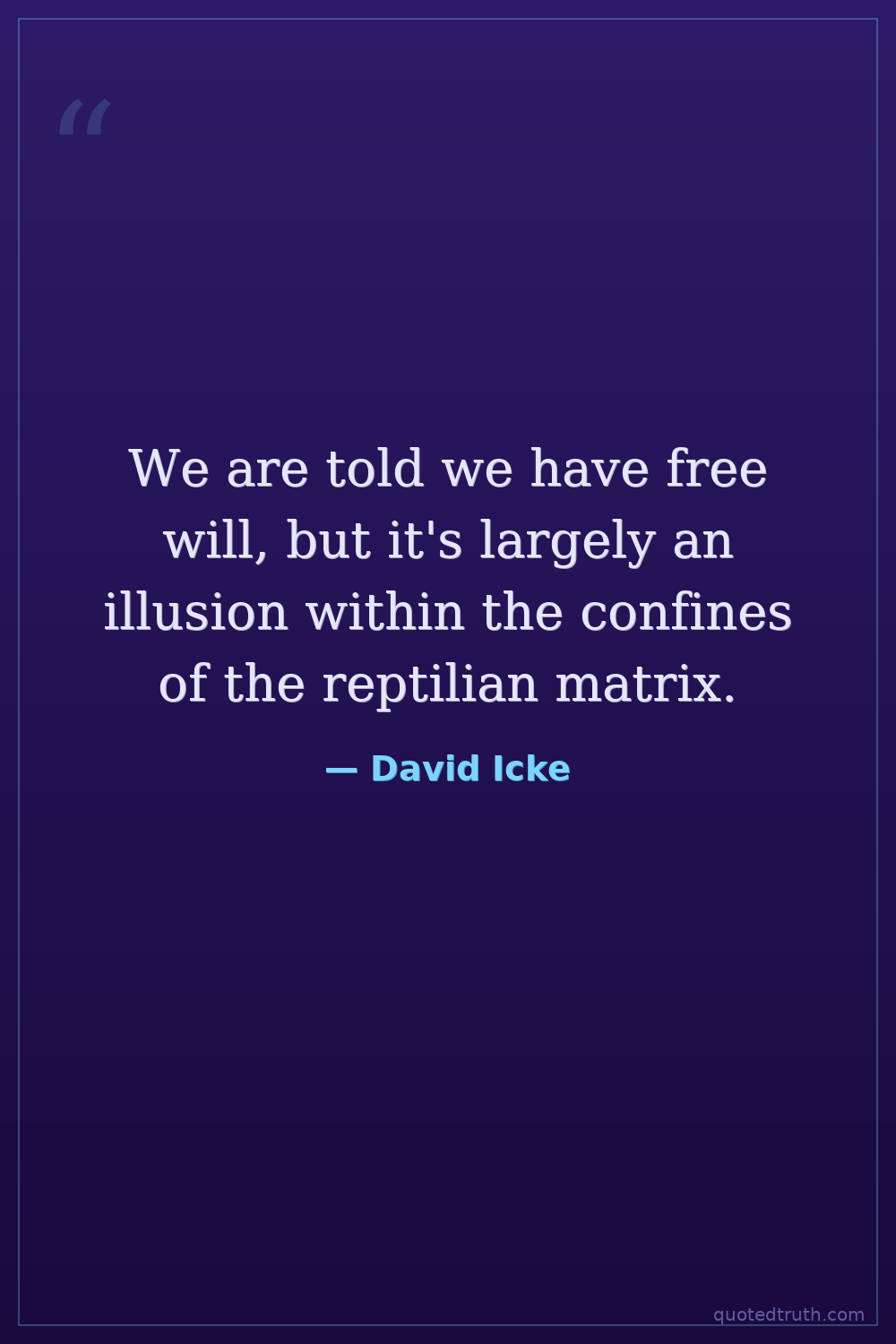 We are told we have free will, but it's largely an illusion within the confines of the reptilian matrix.