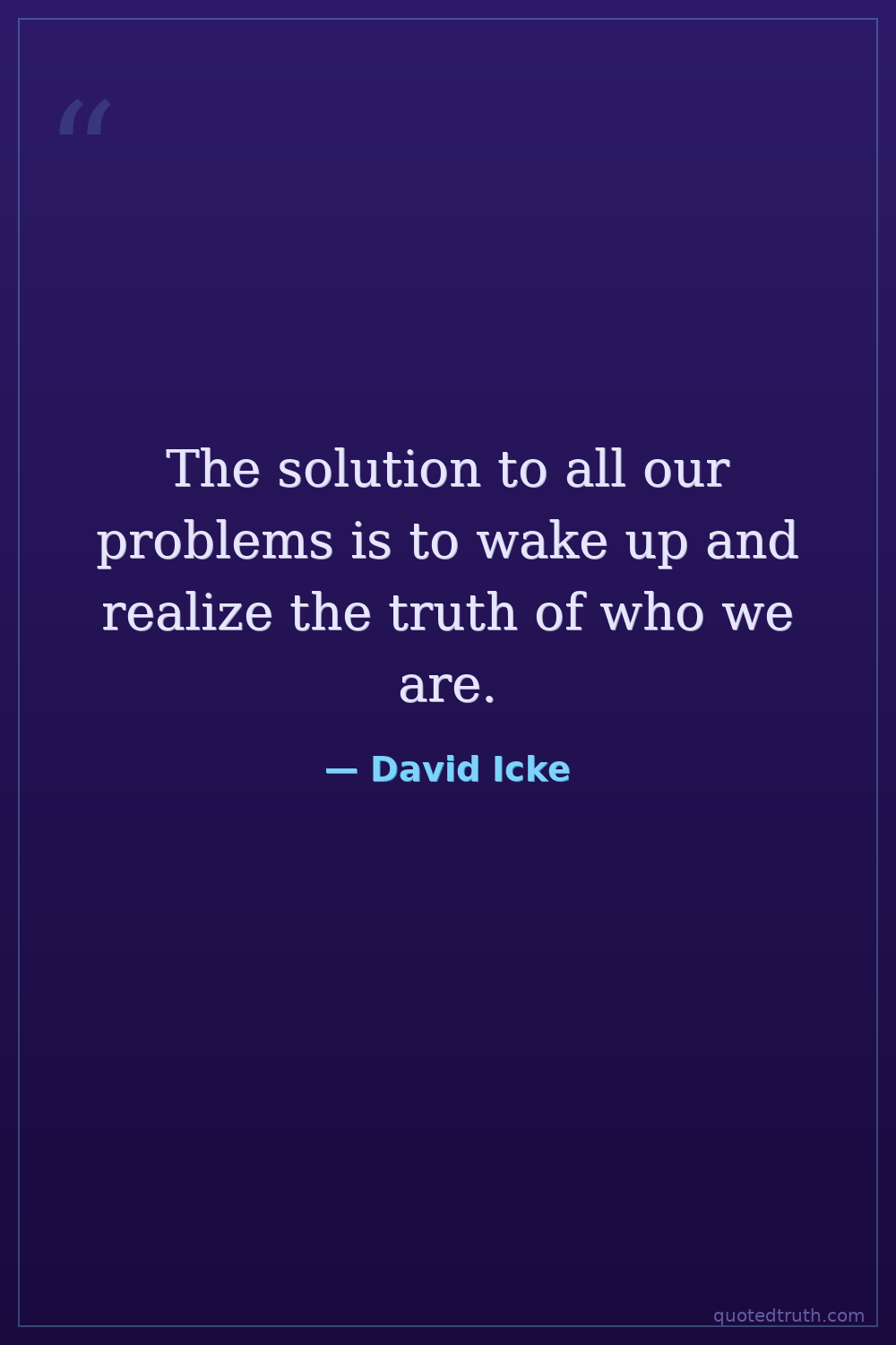 The solution to all our problems is to wake up and realize the truth of who we are.