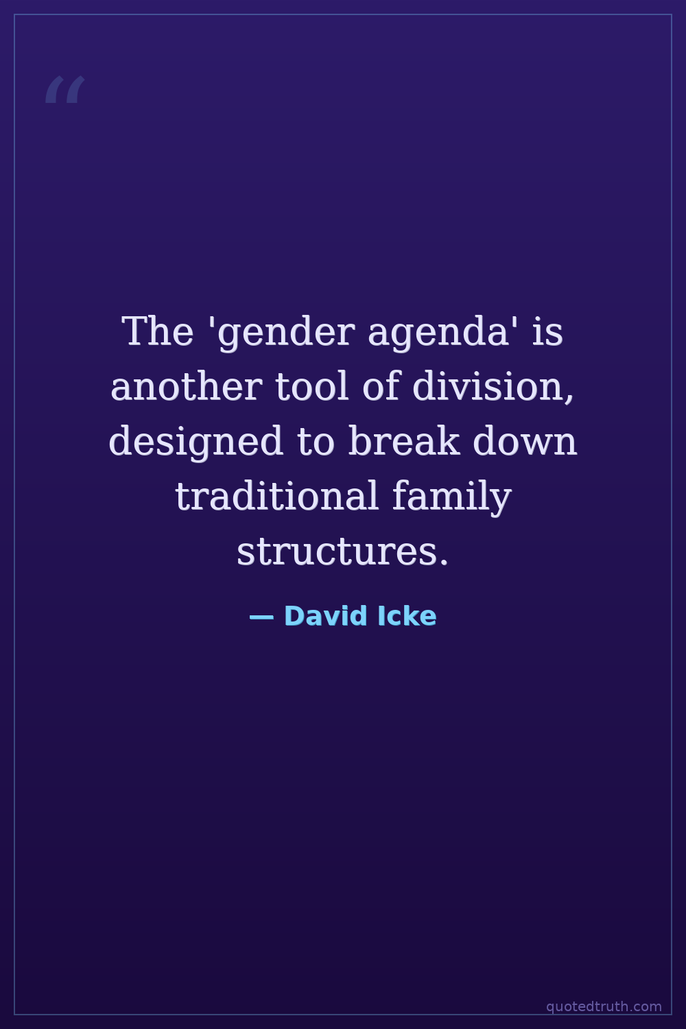 The 'gender agenda' is another tool of division, designed to break down traditional family structures.