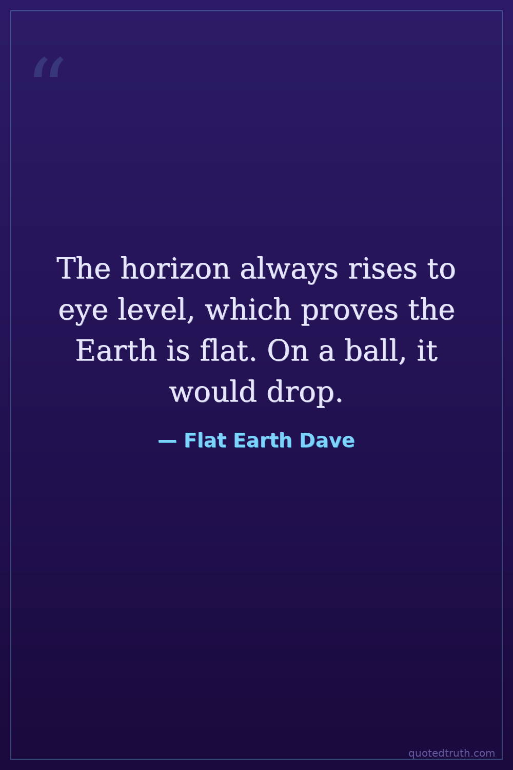The horizon always rises to eye level, which proves the Earth is flat. On a ball, it would drop.
