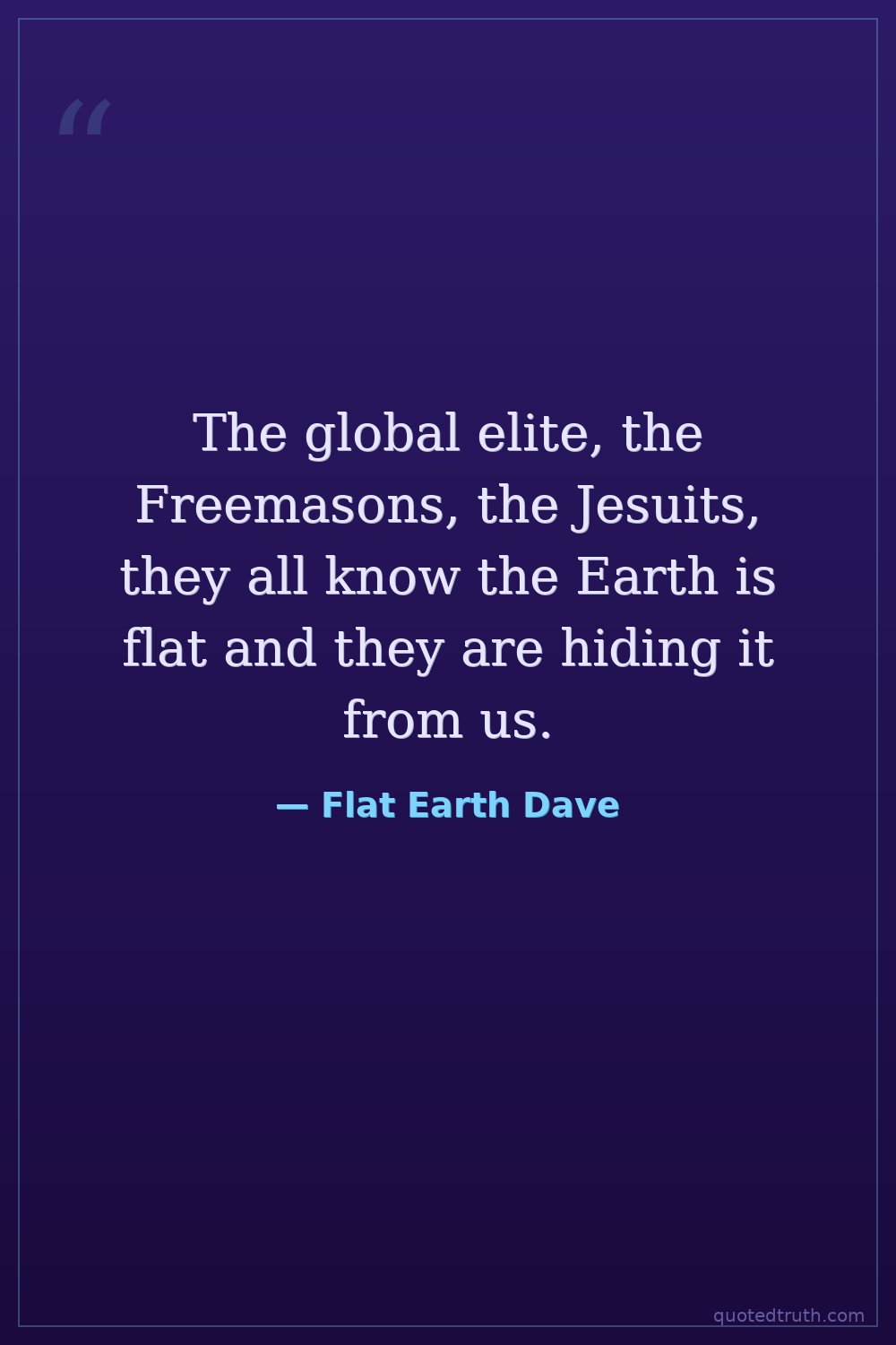 The global elite, the Freemasons, the Jesuits, they all know the Earth is flat and they are hiding it from us.