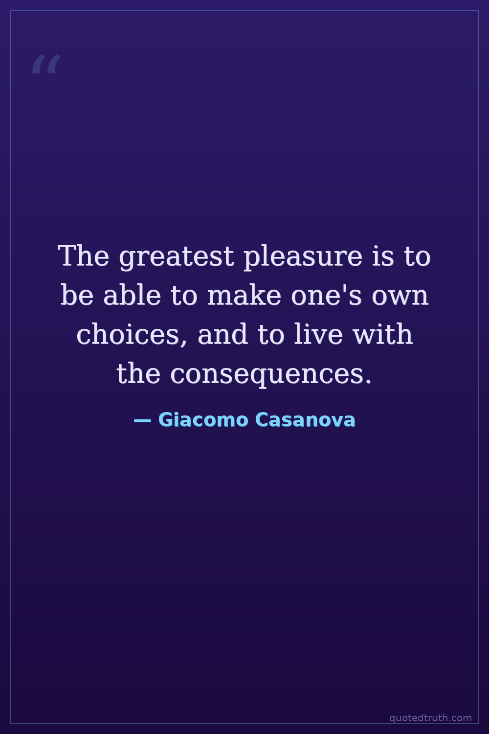 The greatest pleasure is to be able to make one's own choices, and to live with the consequences.