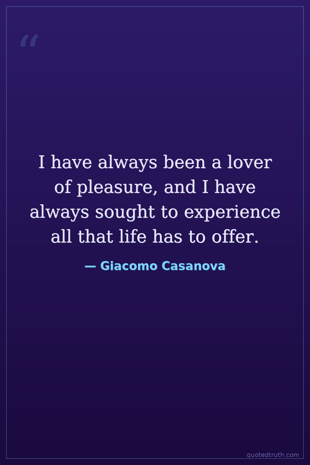 I have always been a lover of pleasure, and I have always sought to experience all that life has to offer.
