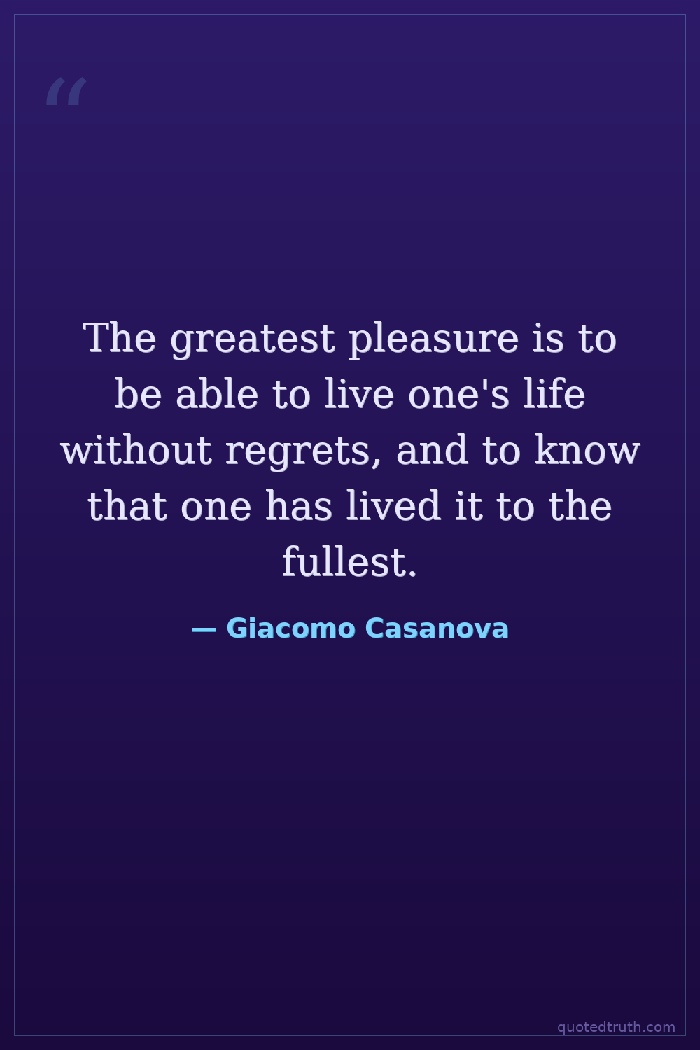 The greatest pleasure is to be able to live one's life without regrets, and to know that one has lived it to the fullest.