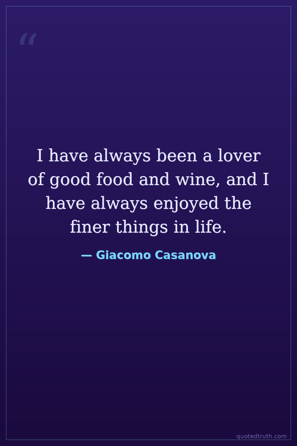 I have always been a lover of good food and wine, and I have always enjoyed the finer things in life.
