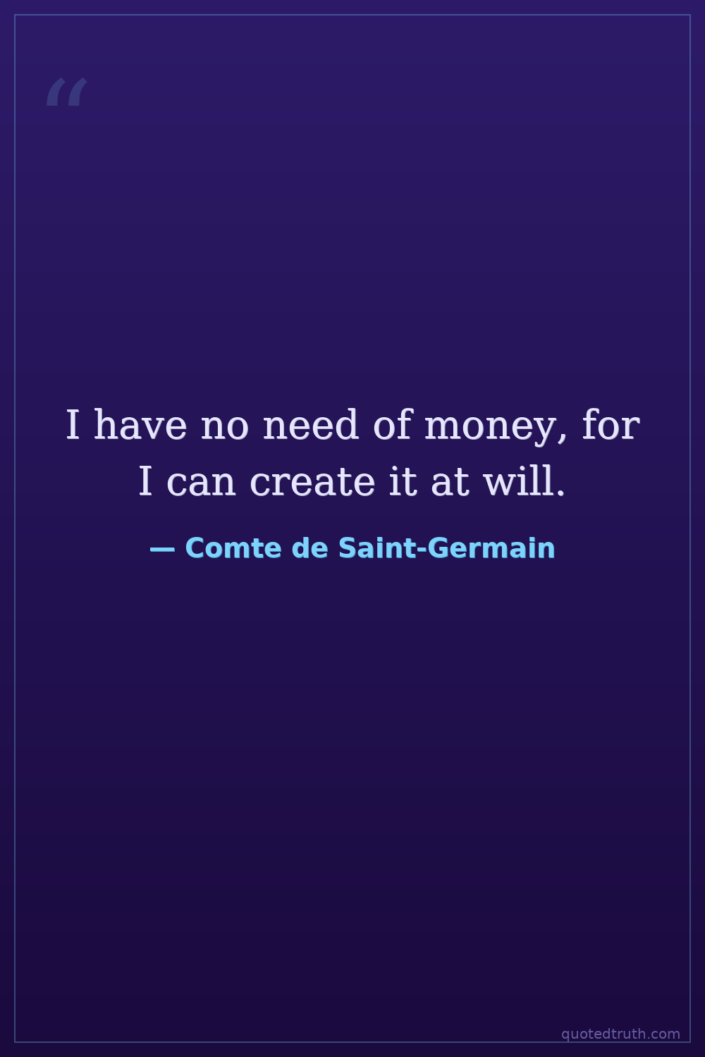 I have no need of money, for I can create it at will.