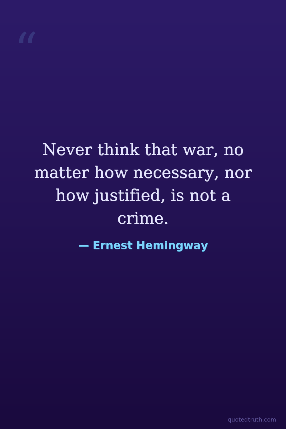Never think that war, no matter how necessary, nor how justified, is not a crime.