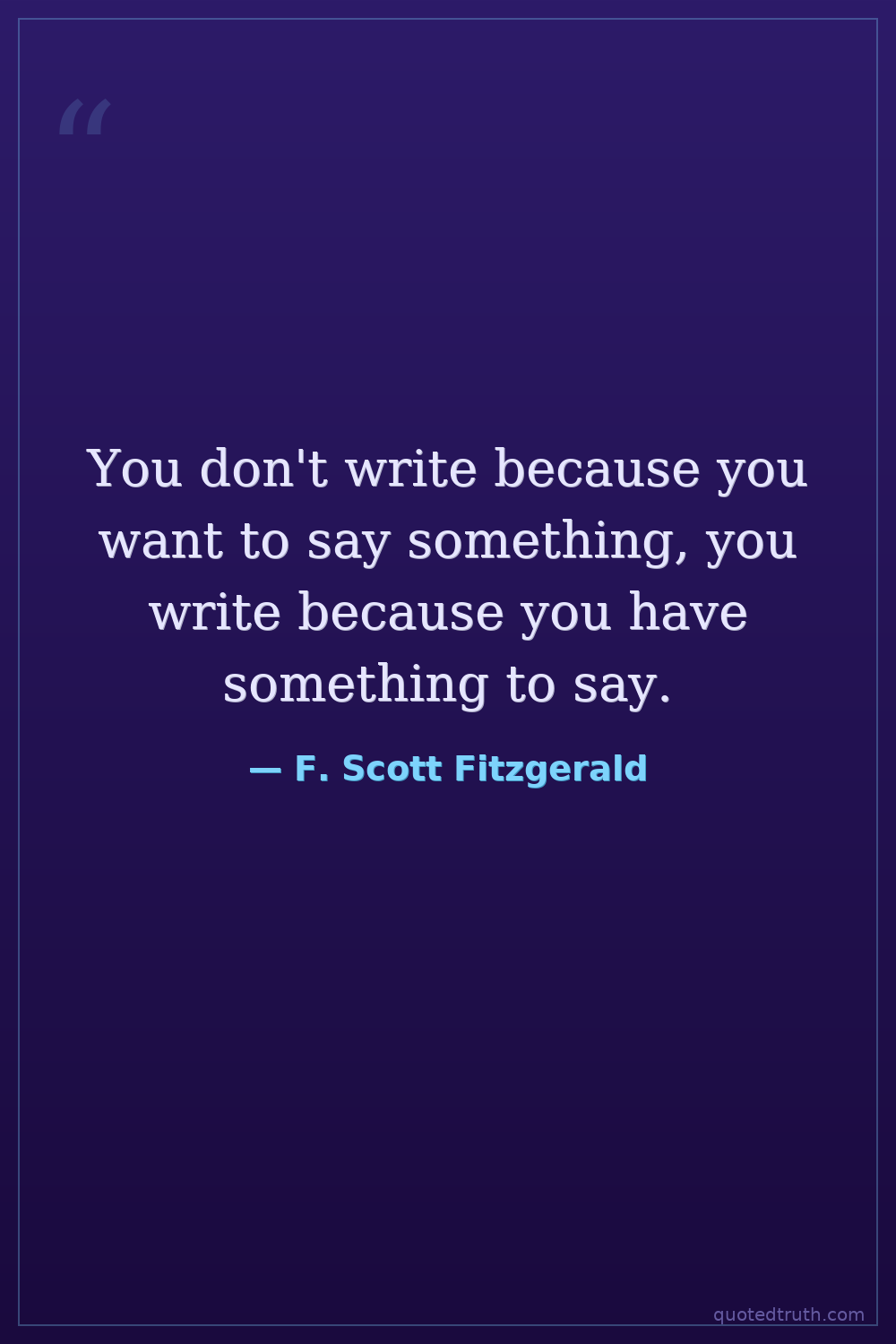 You don't write because you want to say something, you write because you have something to say.