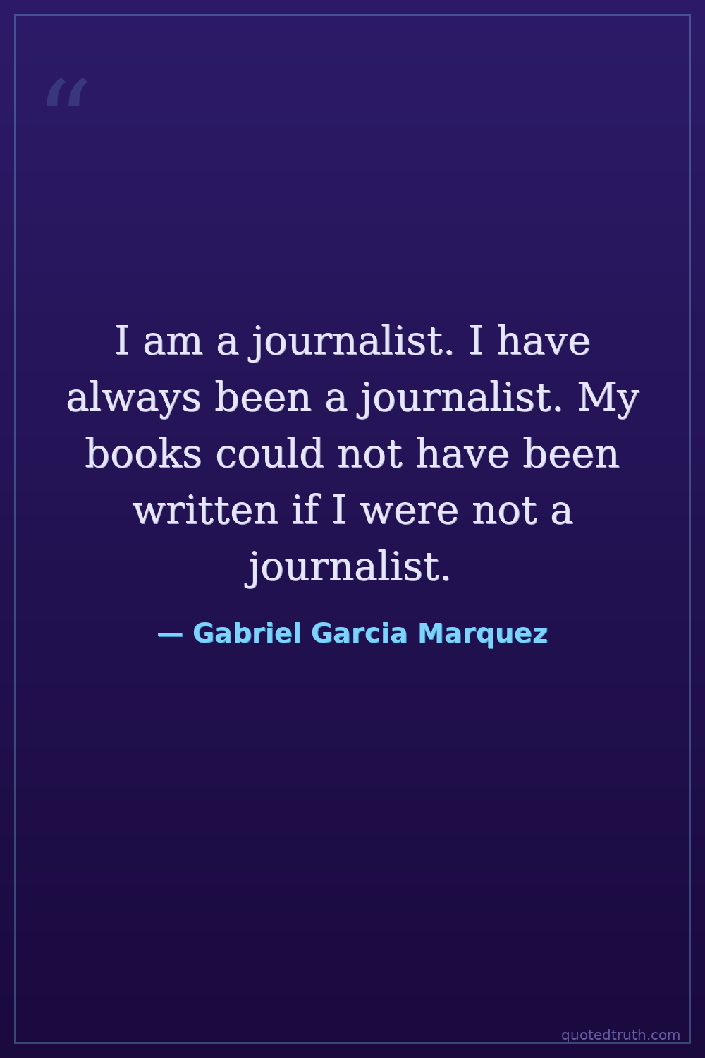 I am a journalist. I have always been a journalist. My books could not have been written if I were not a journalist.