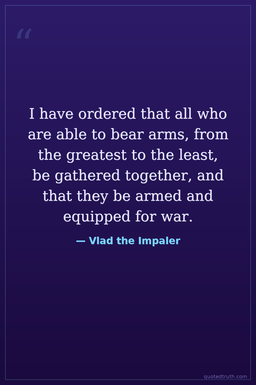 I have ordered that all who are able to bear arms, from the greatest to the least, be gathered together, and that they be armed and equipped for war.