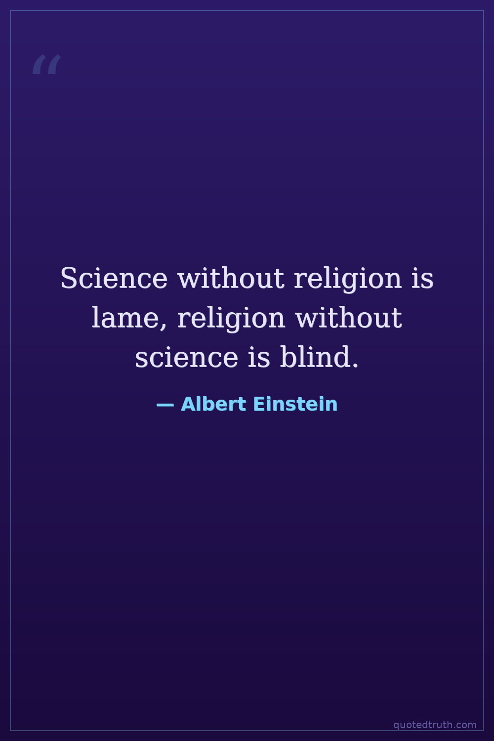 Science without religion is lame, religion without science is blind.