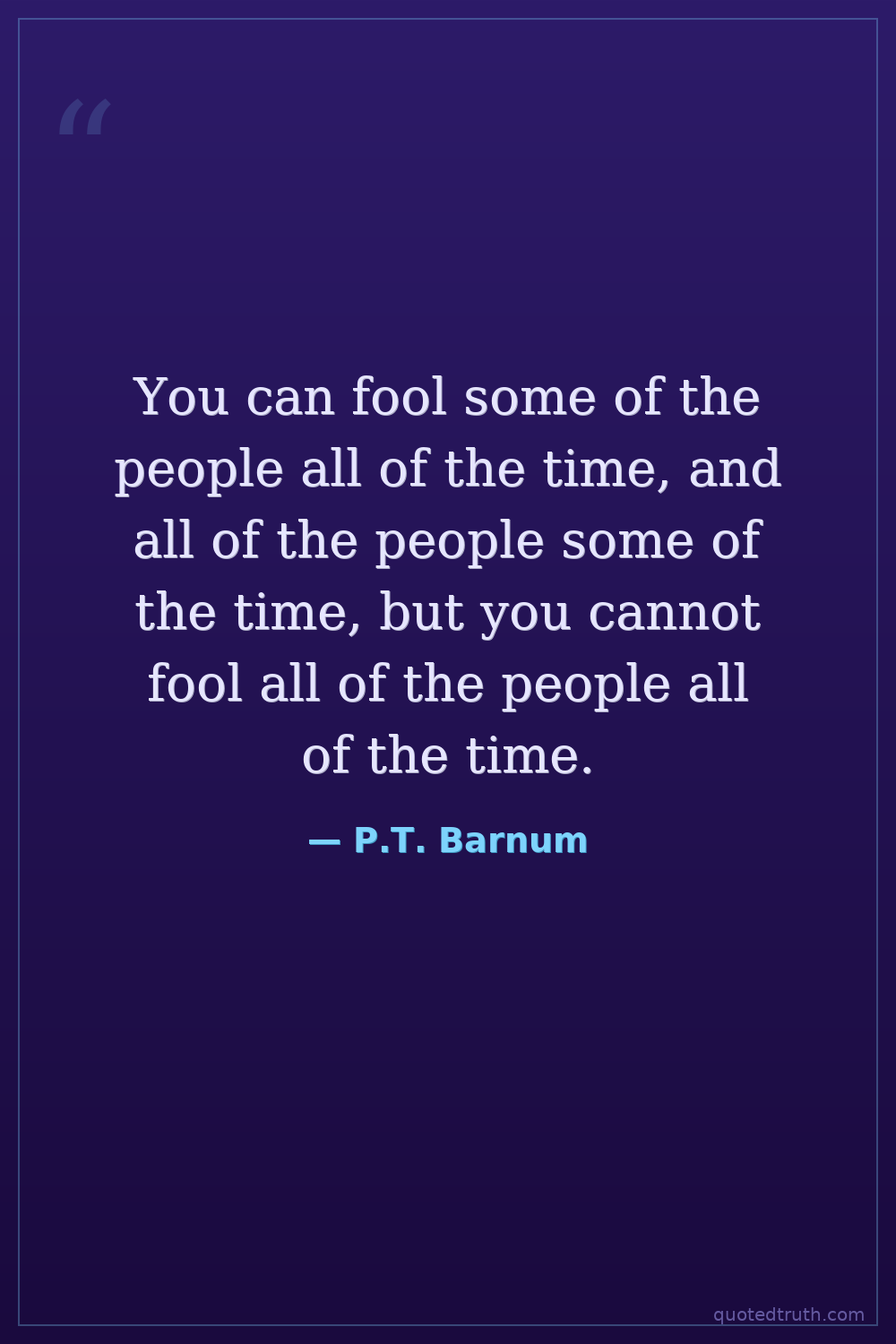 You can fool some of the people all of the time, and all of the people some of the time, but you cannot fool all of the people all of the time.