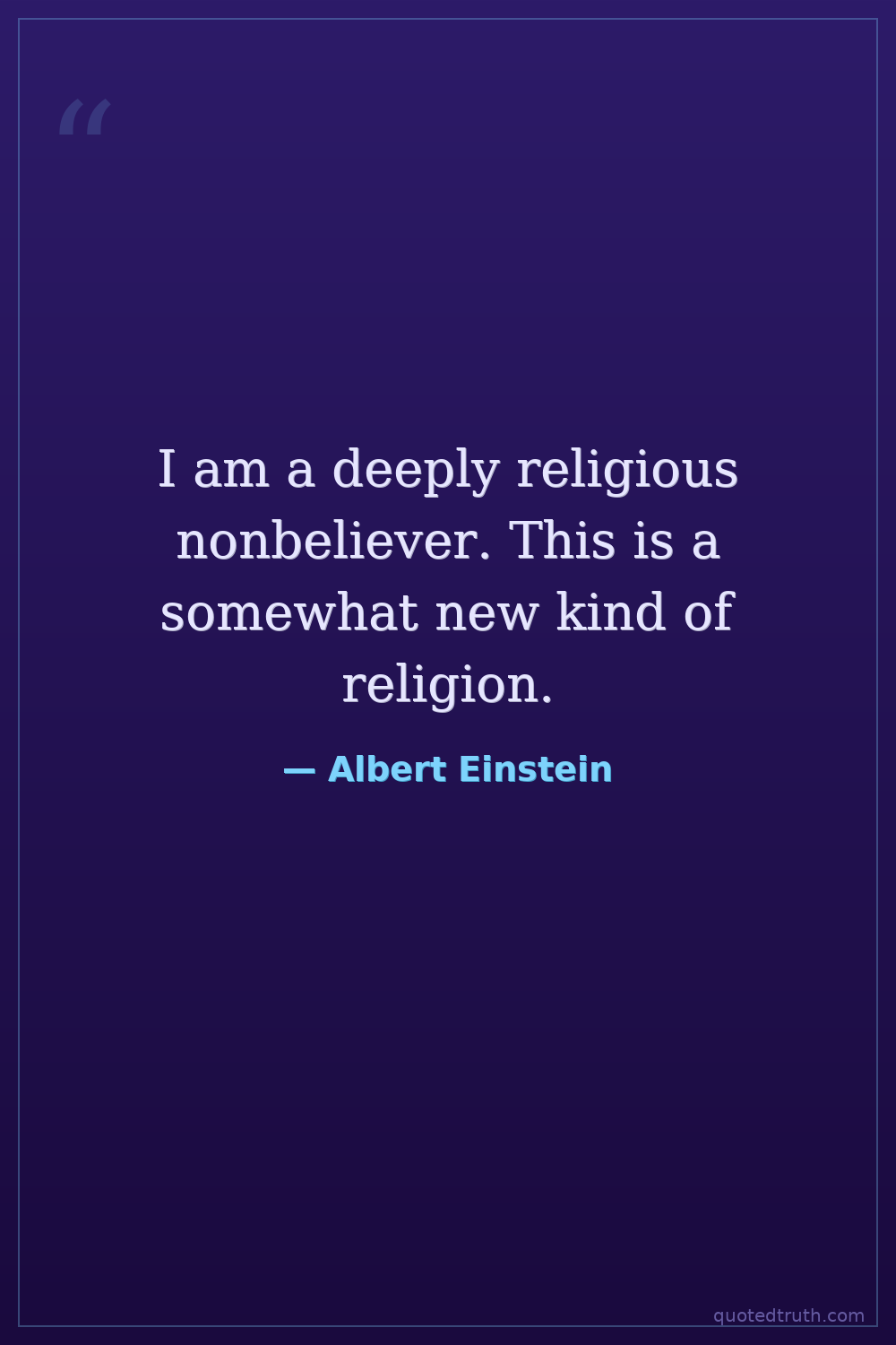 I am a deeply religious nonbeliever. This is a somewhat new kind of religion.