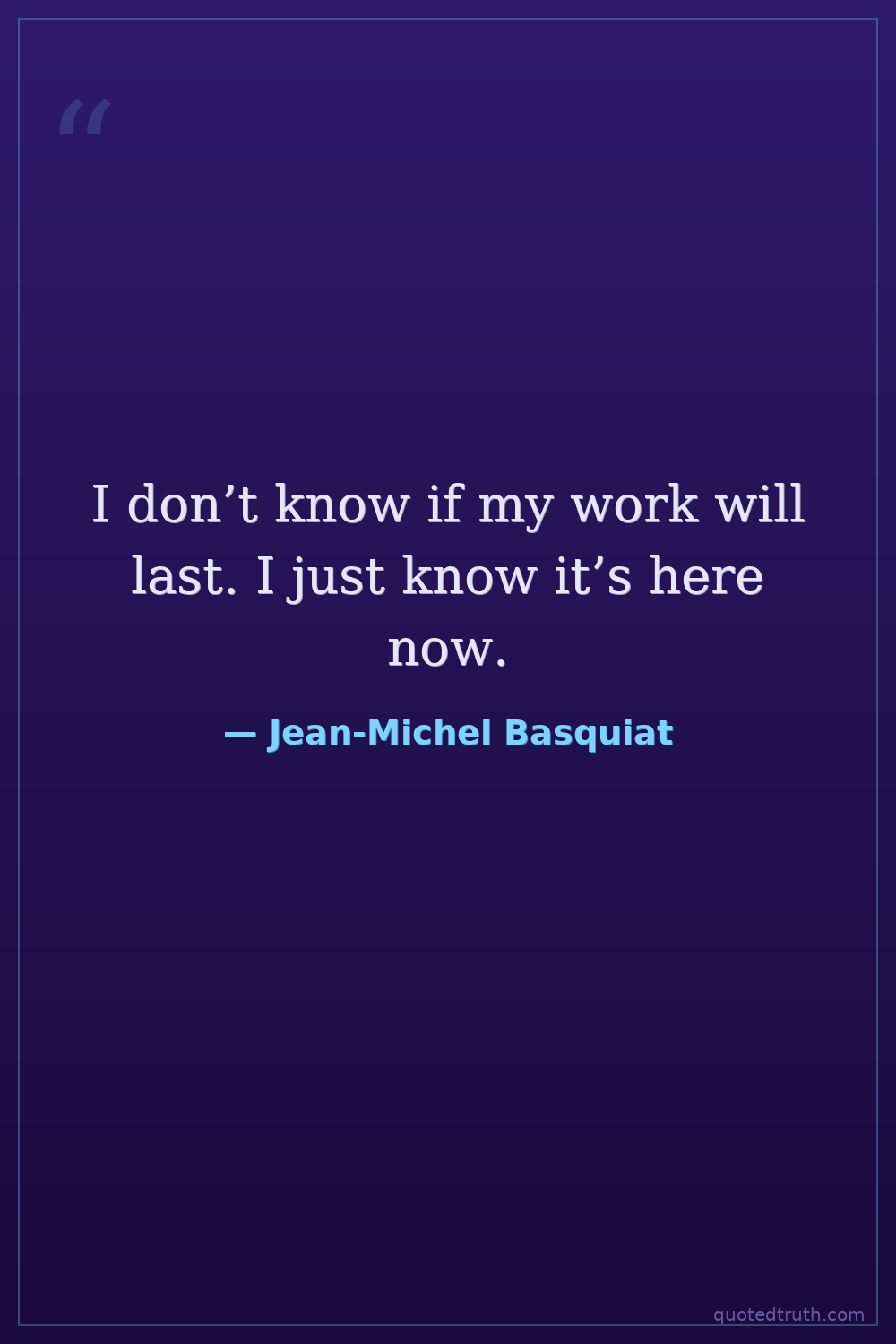 I don’t know if my work will last. I just know it’s here now.
