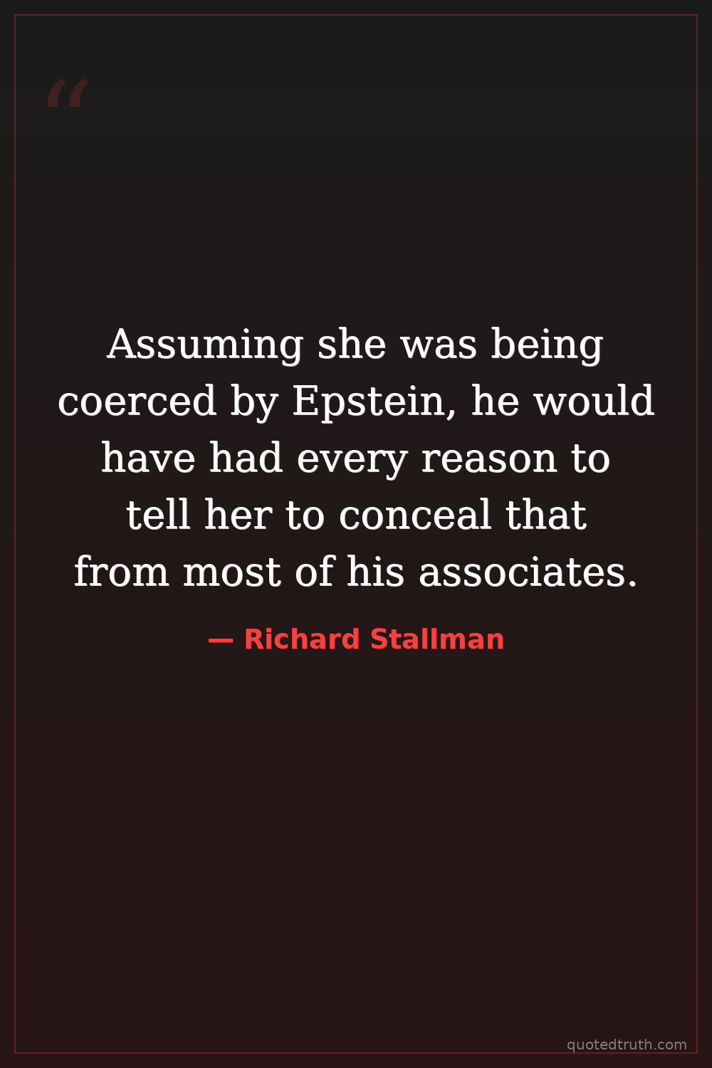 Assuming she was being coerced by Epstein, he would have had every reason to tell her to conceal that from most of his associates.