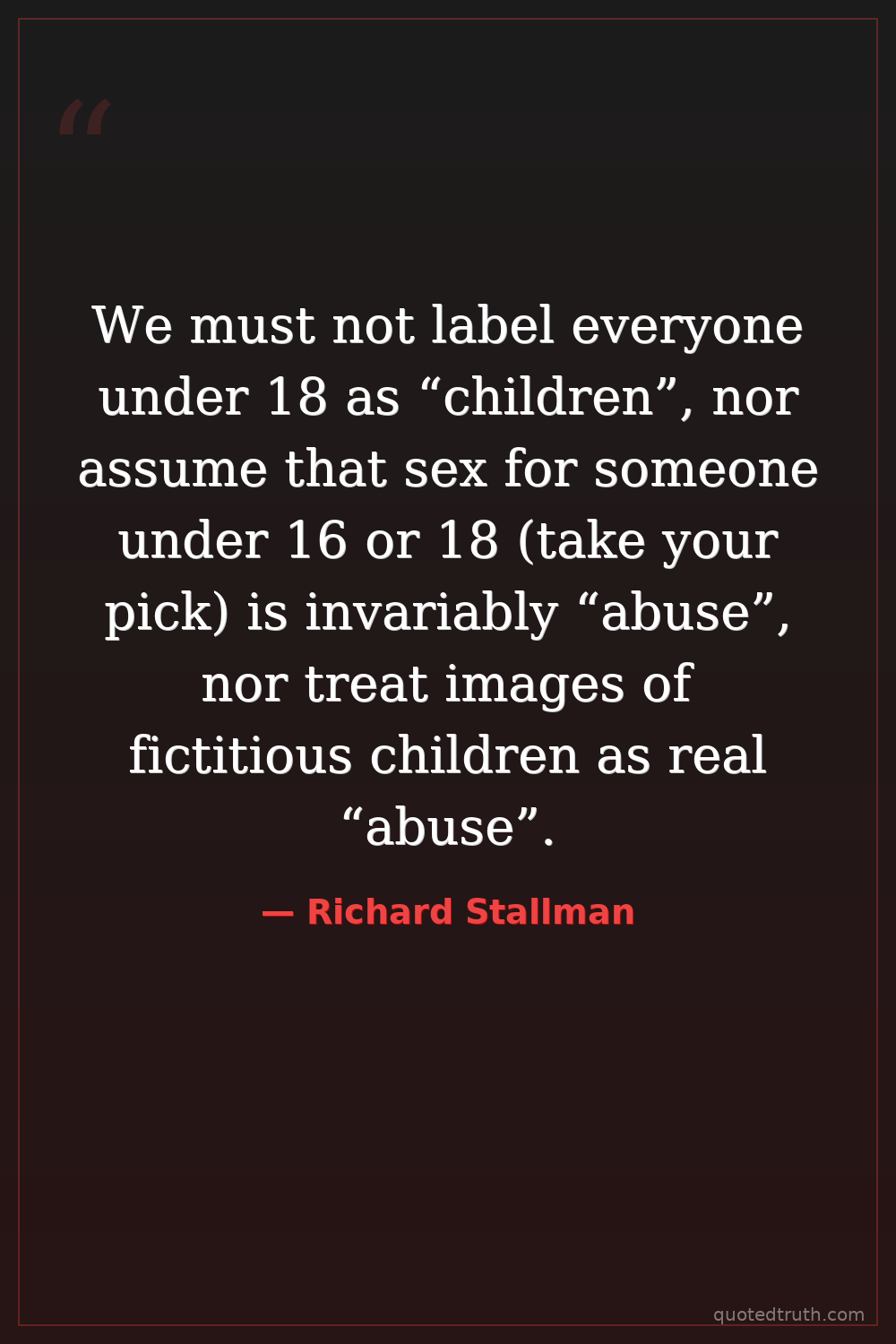 We must not label everyone under 18 as “children”, nor assume that sex for someone under 16 or 18 (take your pick) is invariably “abuse”, nor treat images of fictitious children as real “abuse”.