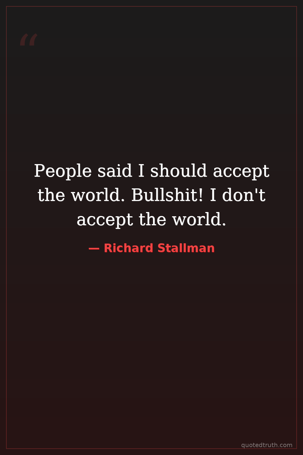 People said I should accept the world. Bullshit! I don't accept the world.