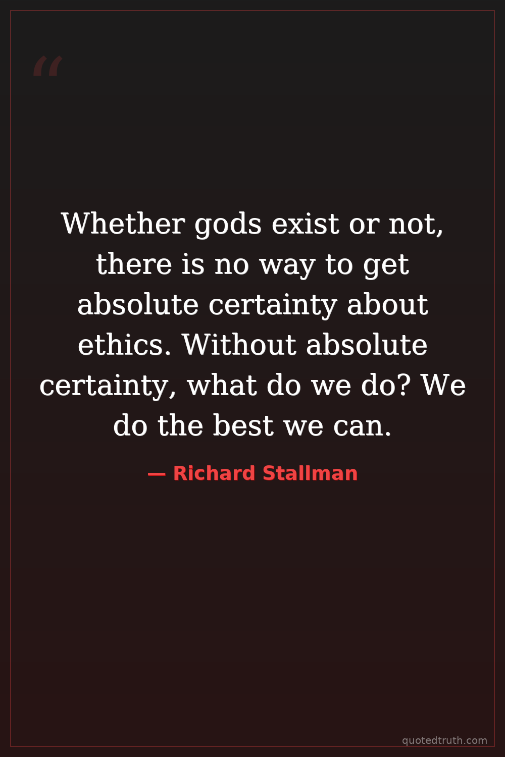 Whether gods exist or not, there is no way to get absolute certainty about ethics. Without absolute certainty, what do we do? We do the best we can.