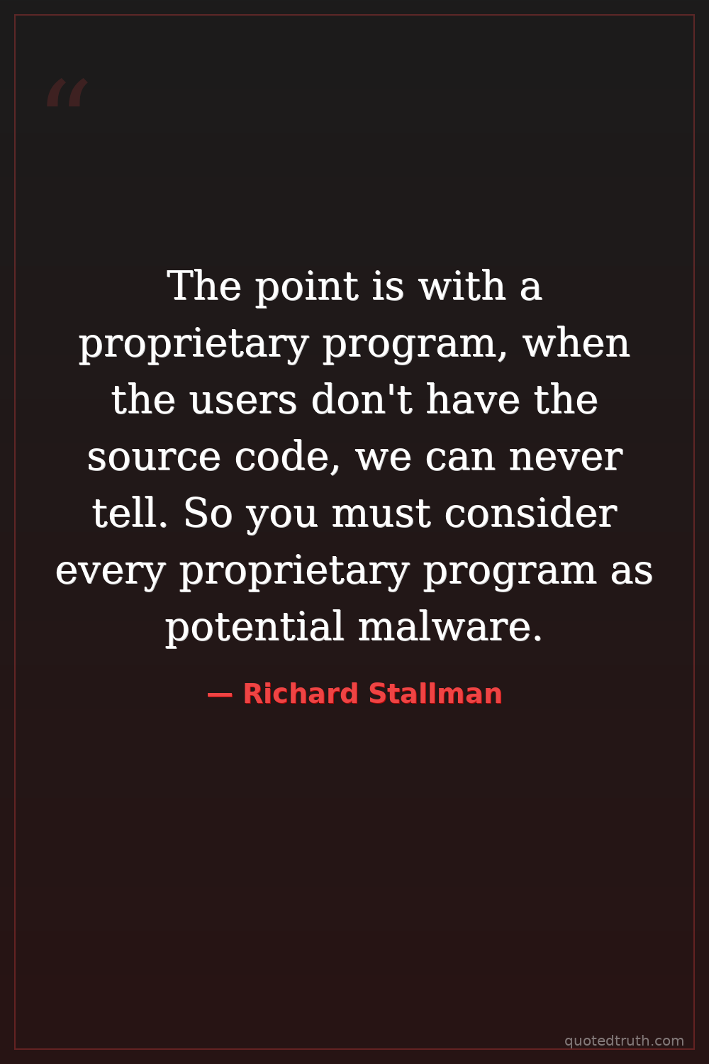 The point is with a proprietary program, when the users don't have the source code, we can never tell. So you must consider every proprietary program as potential malware.