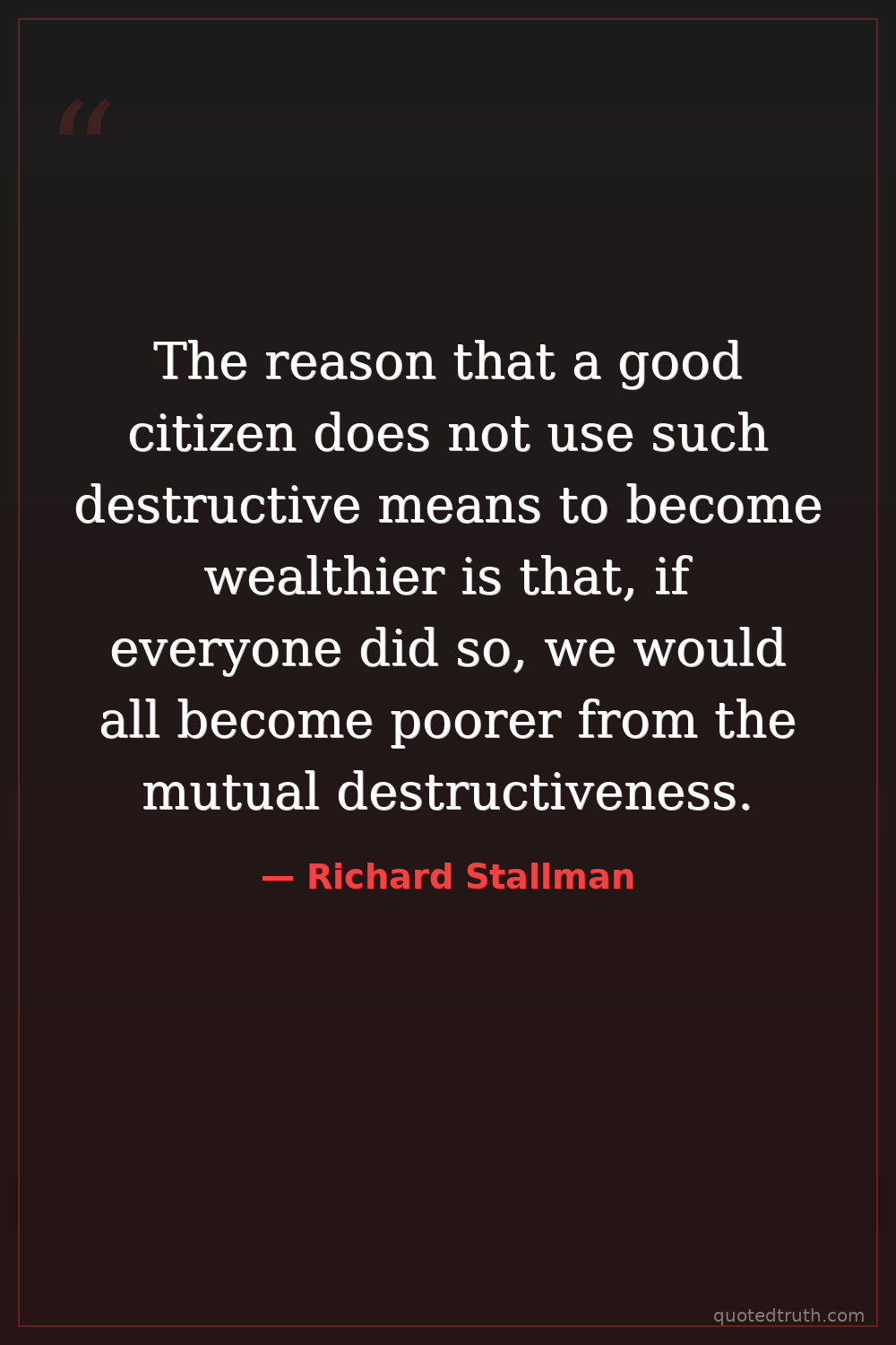 The reason that a good citizen does not use such destructive means to become wealthier is that, if everyone did so, we would all become poorer from the mutual destructiveness.