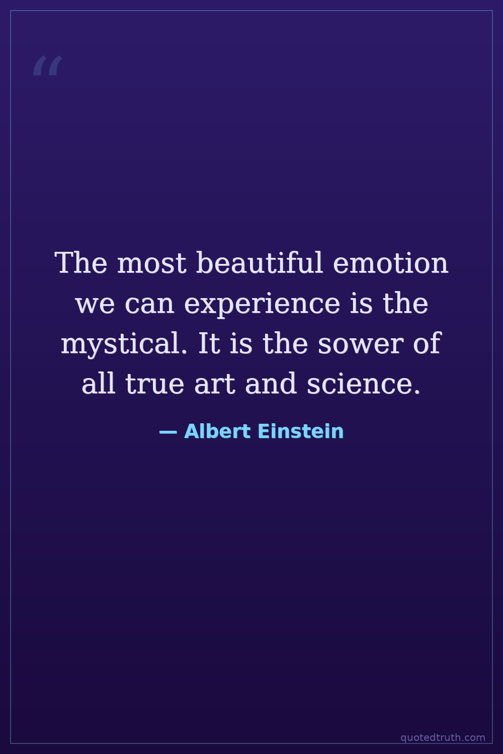 The most beautiful emotion we can experience is the mystical. It is the sower of all true art and science.