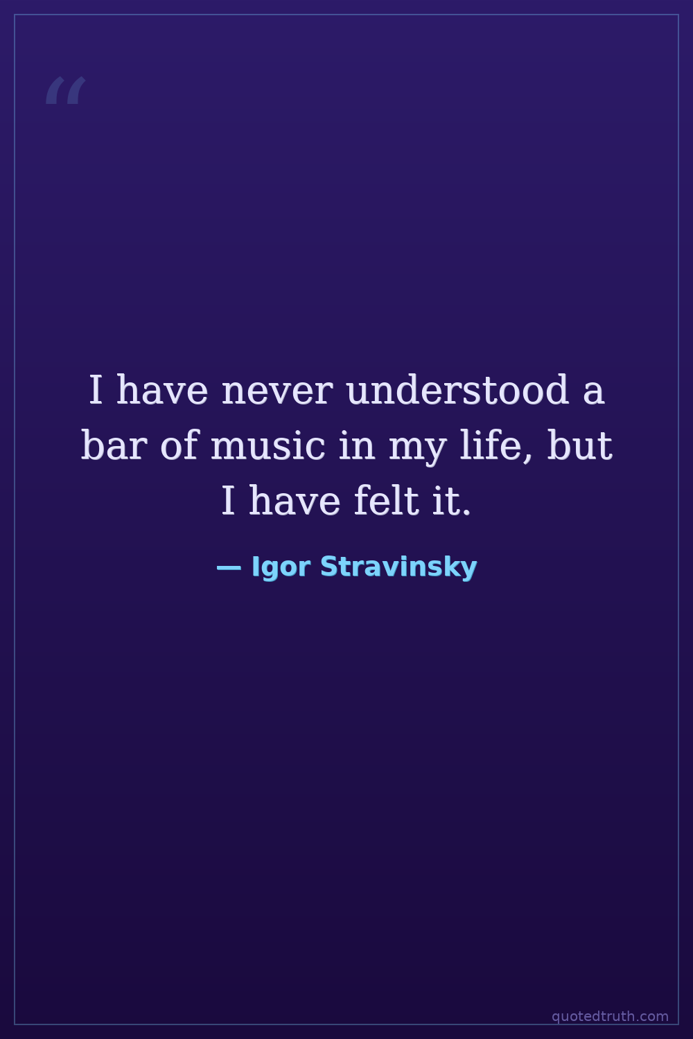I have never understood a bar of music in my life, but I have felt it.