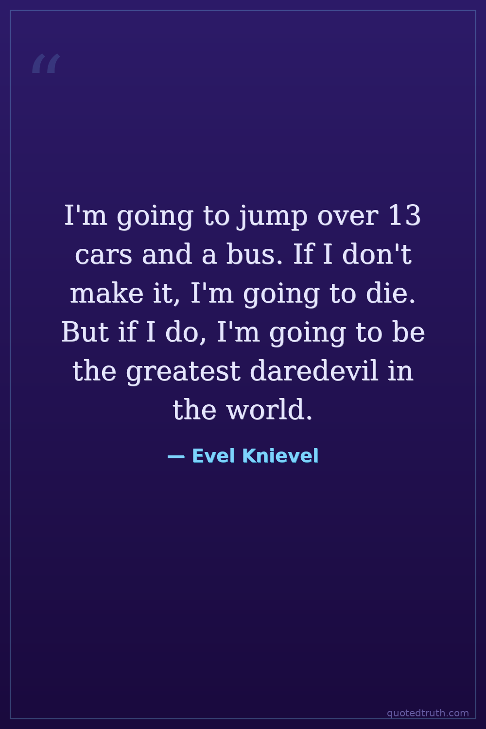 I'm going to jump over 13 cars and a bus. If I don't make it, I'm going to die. But if I do, I'm going to be the greatest daredevil in the world.