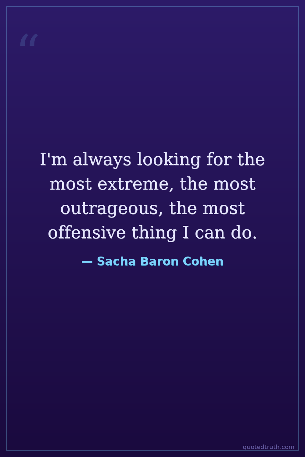 I'm always looking for the most extreme, the most outrageous, the most offensive thing I can do.