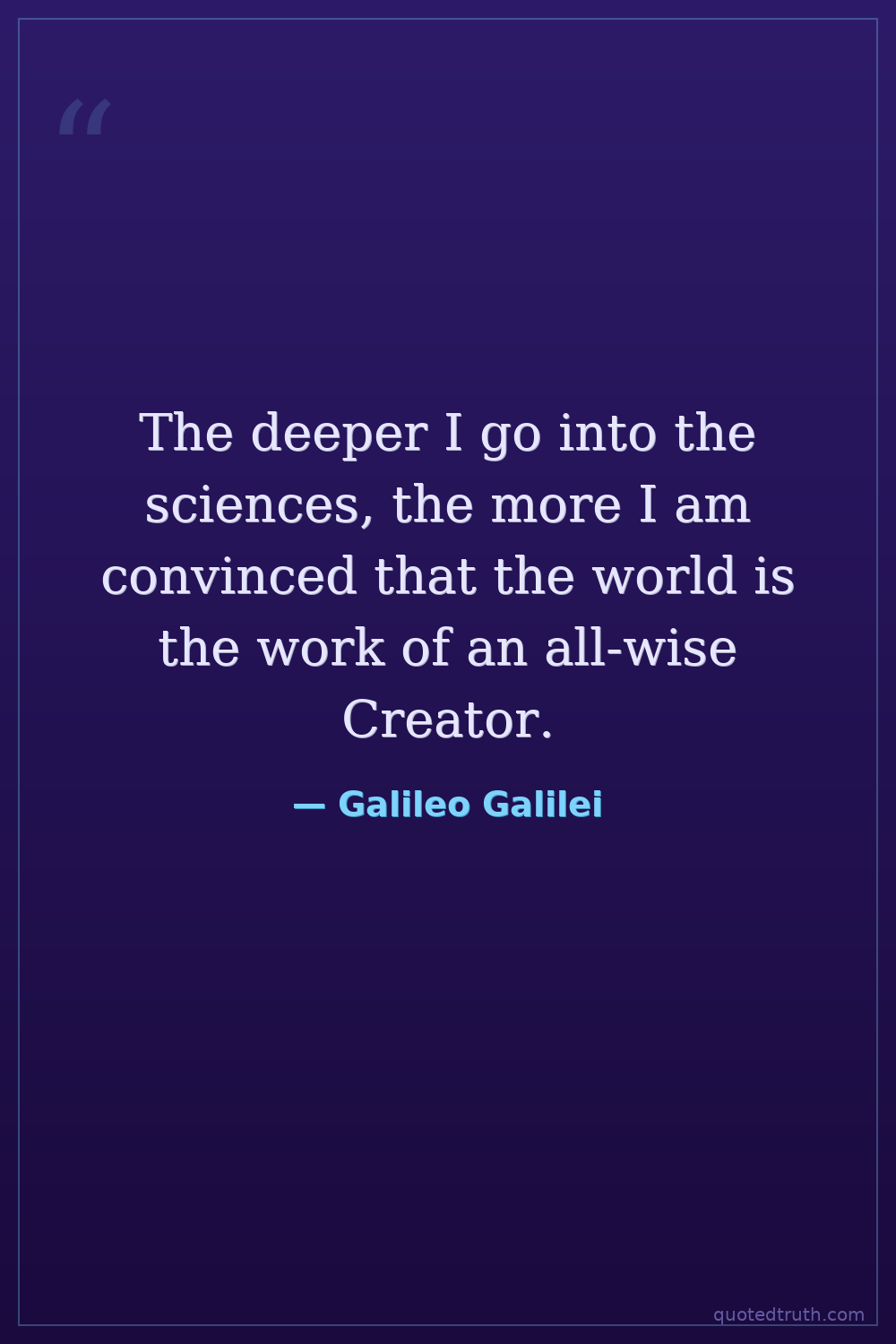The deeper I go into the sciences, the more I am convinced that the world is the work of an all-wise Creator.