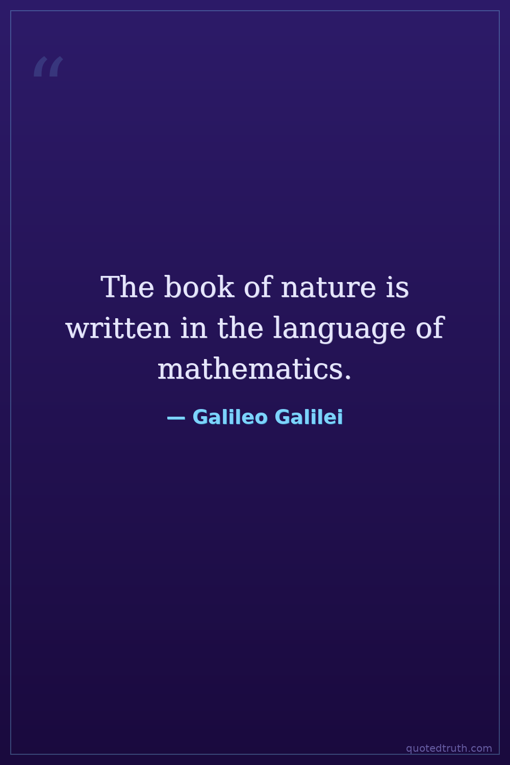 The book of nature is written in the language of mathematics.